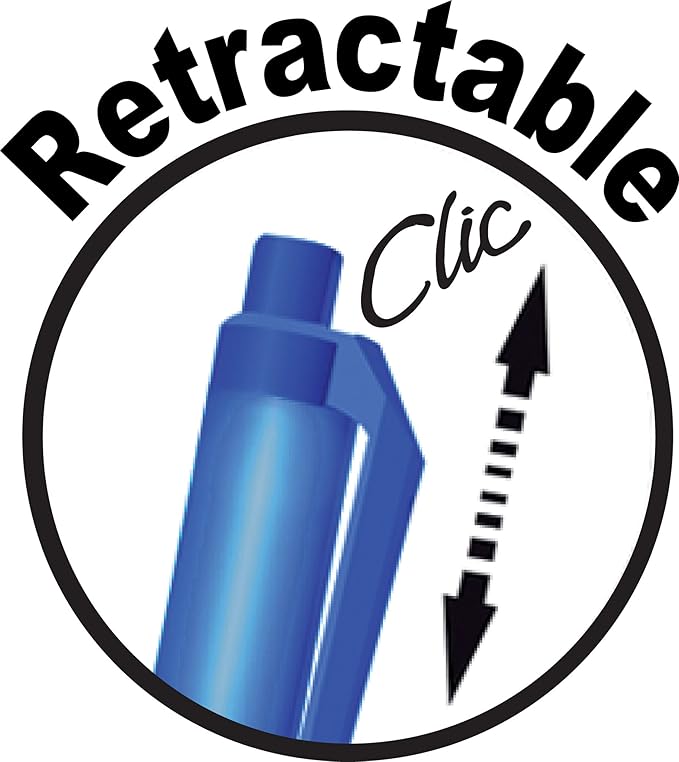 - Convenient retractable black pens with a full-length comfortable grip and plastic clip