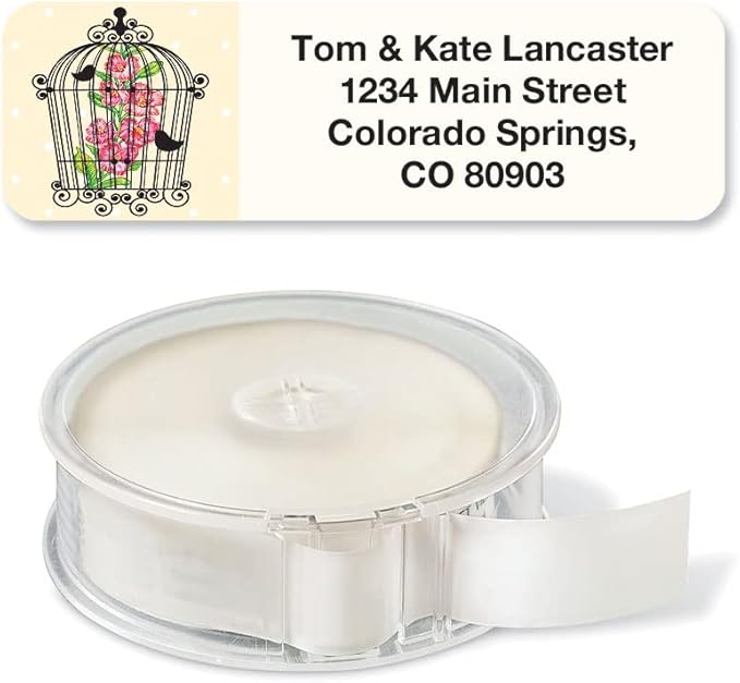 Birdcages Rolled Personalized Return Address Mailing Labels with Dispense, Set of 250, 5 Designs, Small ¾ x 2½ Inch Size, Custom Self-Adhesive Sticker Roll, by Colorful Images