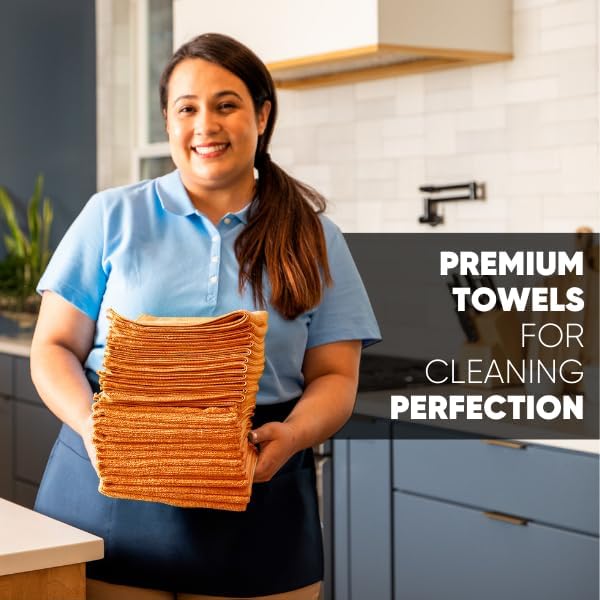 12" x 12" MW Pro Multi-Surface Microfiber Cleaning Cloths | Orange - 12 Pack | Premium Microfiber Towels for Cleaning Glass, Kitchens, Bathrooms, Automotive, Supplies & Products