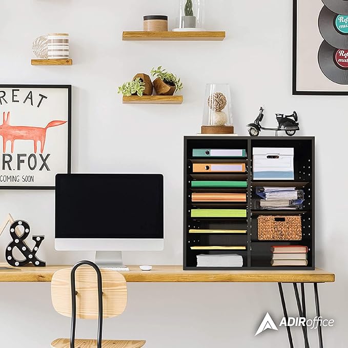 AdirOffice Wooden Adjustable organizerserature Organizer, 16 Compartment Office Mailbox, or Classroom Literature Organizer, Black