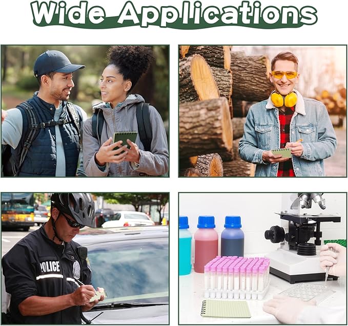 - √ Waterproof Paper: 50 tear-out pages per notebook. This paper that won’t turn to mush when wet and will repel water, sweat, grease, mud, and even survive the accidental laundry mishap and more.