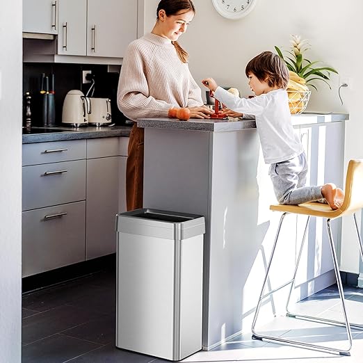 iTouchless 18 Gallon Rectangular Open Top Trash Can and Recycle Bin with AbsorbX Odor Control System Ultra Space-Saving Large Capacity Commercial Grade for Home, Office, Garage, Stainless Steel