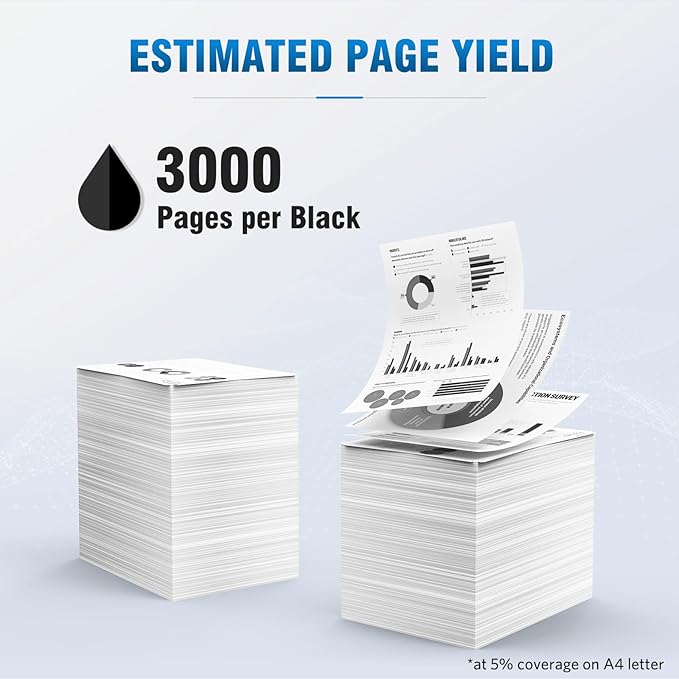 - [ Intelligent Chip ] Equipped with Latest Updated Chip to ensure showing the ink level and being adapted to the new firmware.