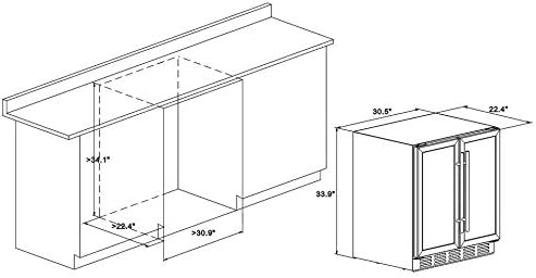 - BUILT IN OR FREESTANDING INSTALLATION: Our drink fridge with 22.4" x 30.5" x 33.9" size adds class to your home or bar dΓ©cor. Itβs backed by a 1 year quality of complete satisfaction.