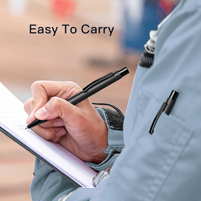 - Great Looking Black Pens: The black ballpoint pens measure 5.51"" (H) with a sleek 0.43"" (D) barrel; Black frosted metal barrel looks slap-up, Ideal for men, executives, flight attendants, police officers, students, business meeting, office, college or everyday professional use as uniform pen