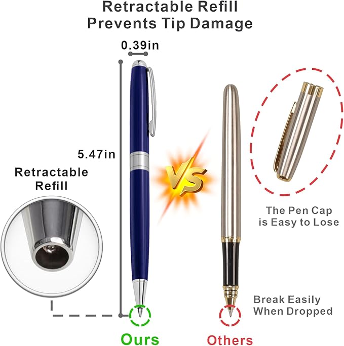 - Comfortable Medium Point Pen: Crafted for extended use with a lightweight design and balanced weight distribution; Metal pens with metal construction ensures long-lasting performance for daily notes or signatures