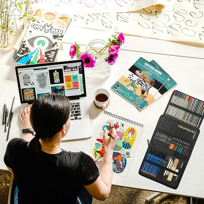 - Sketchbook & Watercolor Paper - When you own this art set, you will have sketchbook (6"x9") and watercolor Paper (6"x9") at the same time, so you don't need to buy sketchbook.This drawing set will be the perfect choice for you to start your art career.