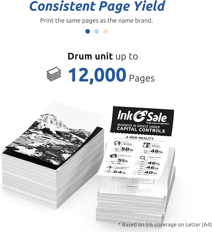 - Estimated page yield: 2600 pages per TN-660 toner cartridge and 12000 pages per DR-630 drum unit at 5% coverage (Letter/A4)