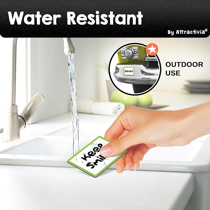 - Rewritable 100,000+ Times: Unlike flimsy labels that degrade over time, our white board magnetic labels are engineered to be erased and rewritten over 100,000 times without losing quality. The advanced coating prevents ink buildup, so every wipe restores a brand new surface, saving you money while reducing waste!