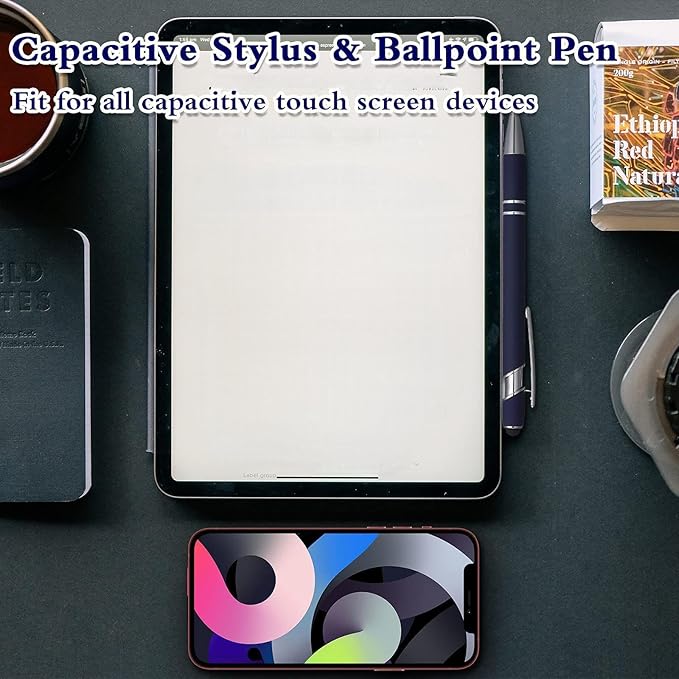 - 2 In 1 Stylus Pen: touch screen stylus and ballpoint pen; One end has a sensitive stylus, and the other end is equipped with a quality black ink ballpoint for convenient use; Press the stylus pen top to extend the pen for smooth and long-lasting ink flow writing; Ballpoint pen refills are replaceable; You can take notes on your tablet, mobile phone or computer screen with this pen