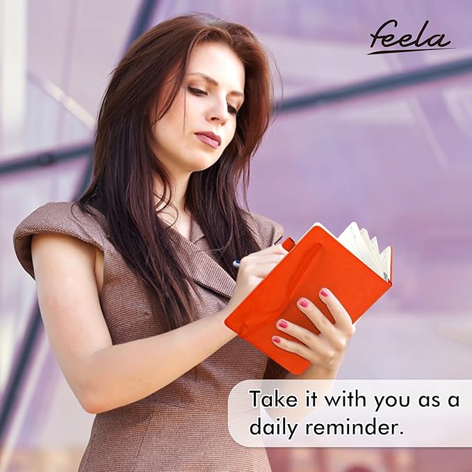 12 Pack Notebooks Journals Bulk with 12 Black Pens, Feela A5 Hardcover Notebook Classic Ruled Journal Set with Pen Holder for School Business Work Travel Writing, 120 GSM, 5.1”x8.3”, Orange
