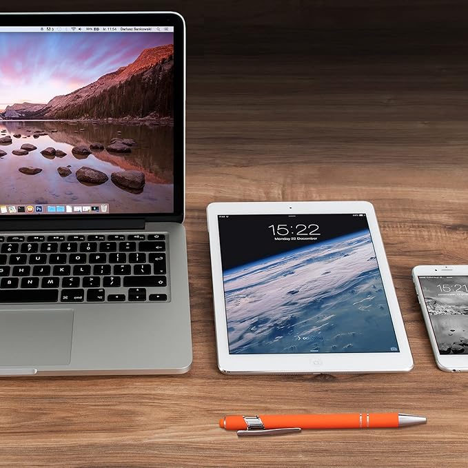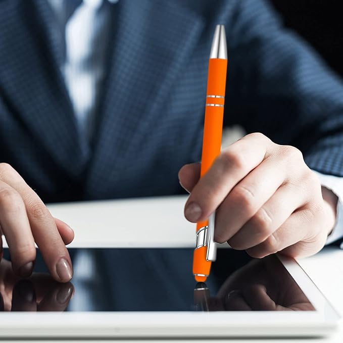 8 Pieces Ballpoint Pen with Stylus Tip Black Ink 2 in 1 Stylus Metal 1.0 mm Medium Point Smooth Pen Rainbow Colorful Rubberized Ballpoint for Touch Screen Tablet(Orange)