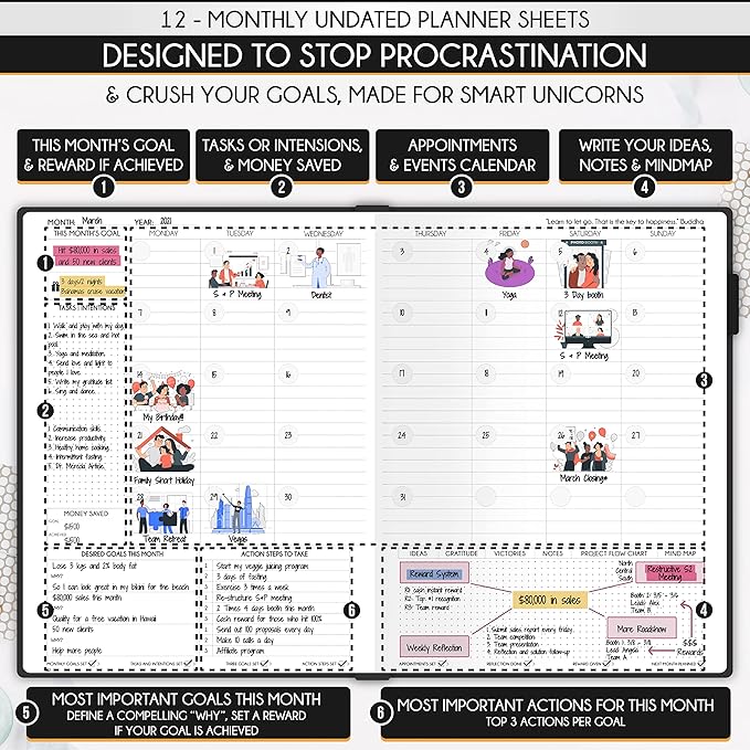 - BUSINESS PLANNER - Luxurious and high-quality, suited for both men and women, and ideal for entrepreneurs, professionals, college students, and anybody with a burning desire to achieve their objectives; No-questions-asked money-back guarantee