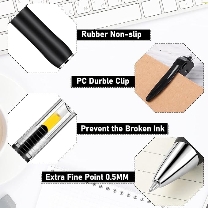 - Retractable pens with the clip: pens are designed with the retractable style, so you can use it without worrying about the pen core will not eject ink well; Just press lightly to use. With a clip, pen can be clipped on notebooks, diaries, shirt pockets and so on, easy for you to carry
