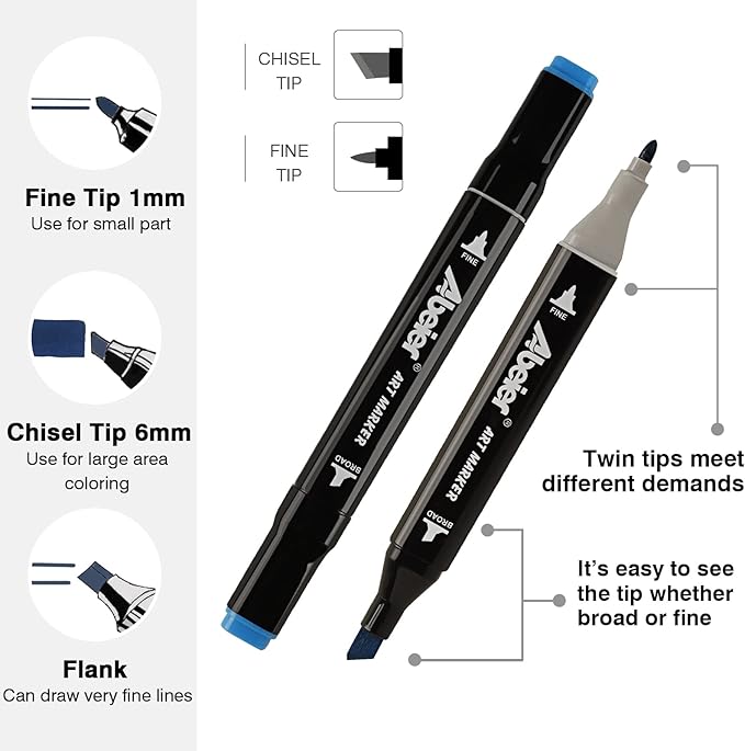 - Dual Tip Precision for Every Detail: Switch effortlessly between a 1-7mm chisel tip for bold strokes and a 0.5-2mm fine bullet tip for intricate lines. Ideal for artists, students, and hobbyists, these artist markers handle everything from adult coloring book markers designs to school posters with studio-grade control.