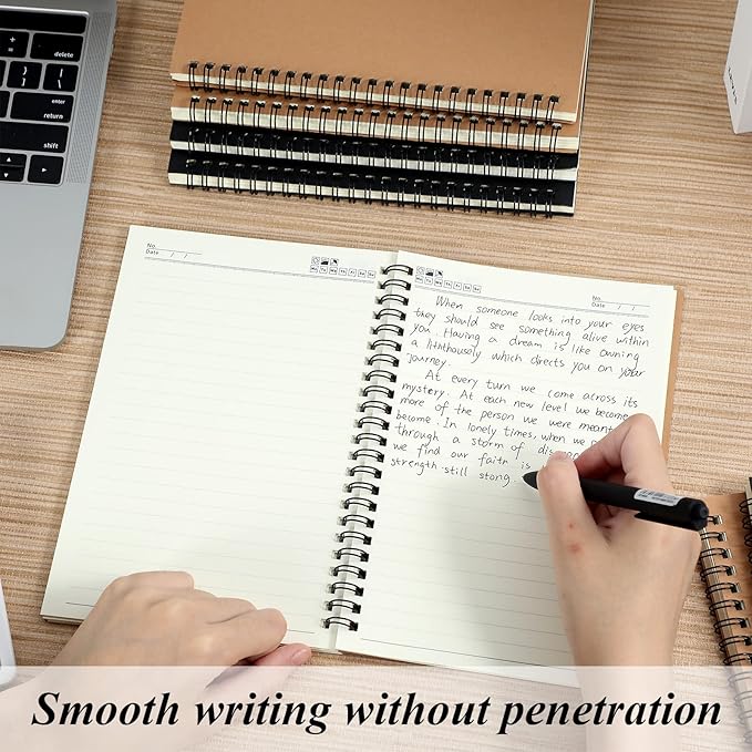 - Ample for Your Use: the package contains 12 packs of spiral bound notebook of A5 size in different cover, beige inside paper to reduce visual fatigue, sufficient quantities to meet your daily use demands
