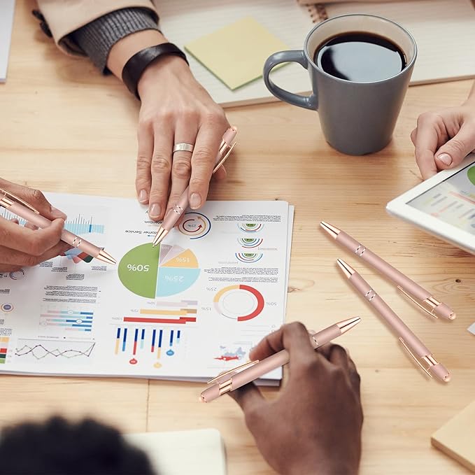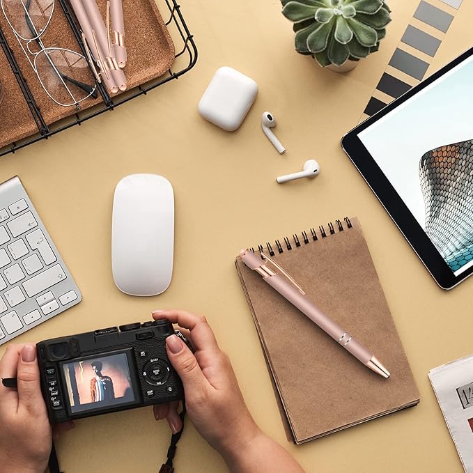 Tenare 12 Pieces 2 in 1 Stylus Metal Ballpoint Pen with Stylus Tip, 1.0 mm Black Ink Ballpoint Pen for Touch Screens(Rose Gold)
