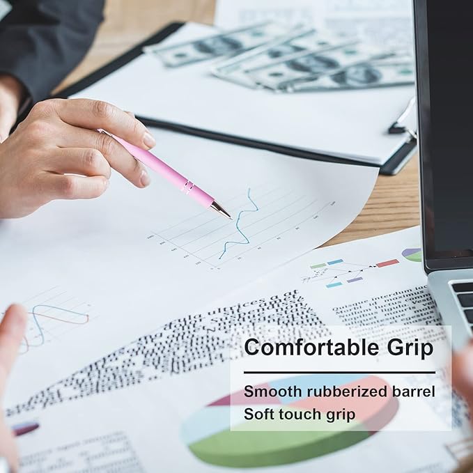 - 【COMFORTABLE GRIP】: The smooth rubberized barrel gives a soft touch grip for extra comfort, smooth writing and just-right weight for effortless.
