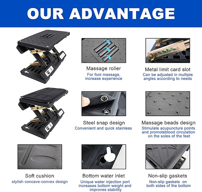 - Ergonomic comfort: Ergonomic Foot Rest Under Desk provides maximum comfort and support for your legs and foot. foot rest under desk No installation is required for this office footrest under desk, making it simple to use. Anyone can operate it without any hassle. under desk footrest can be adjusted to multiple angles to accommodate your needs, desk foot stool reducing pressure and strain on your Legs and Foot.