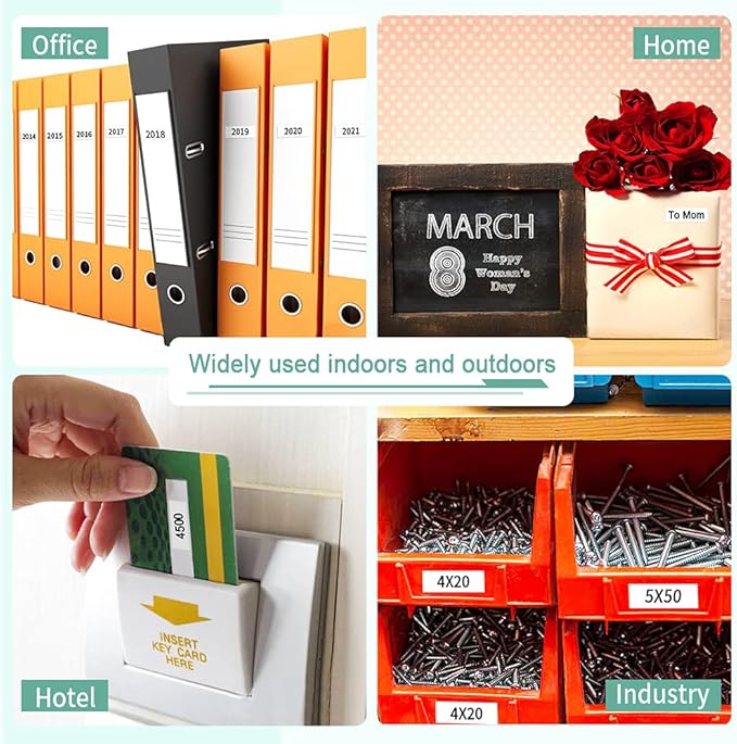 - Wide Applications: 12mm 0.47" laminated tze label tape suitable for home, office, school, industry, warehouse, chemistry laboratory, hotel, and hospital and labeling kitchen seasonings, files, folders, shelves, and books