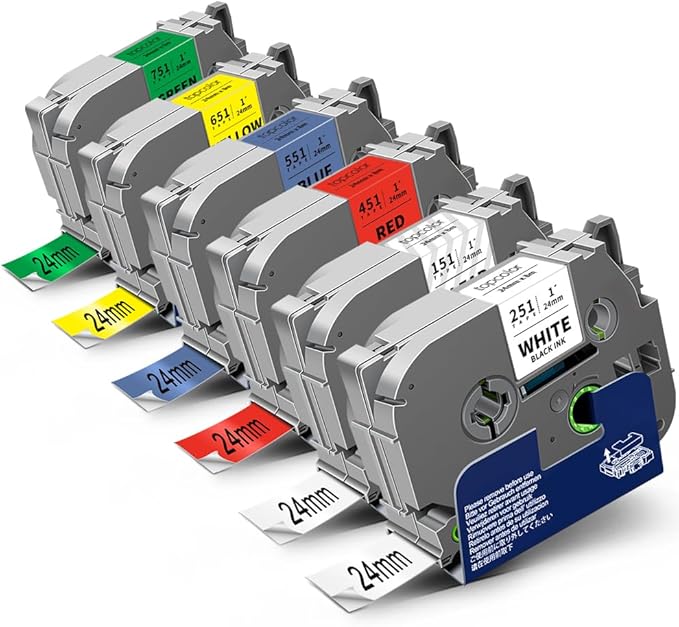 6-Pack 24mm 0.94" Laminated Tape Compatible for Brother 24mm Label Tape Tze-151 251 451 551 651 751 P Touch Tze Tz 1 Inch Multi-Color Label for PTD610BT PTD600 PTP710BT PTP750W PTP910BT