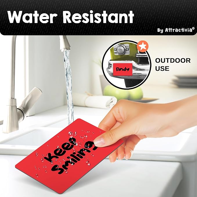 - Strong Magnetic Hold: Our dry erase magnets feature a powerful 0.02 inch thick magnetic back for instant and secure adhesion to any metallic surface, whether flat or slightly curved. Easily attach our dry erase stickers labels and remove without residue, ensuring a firm grip even on rounded surfaces.