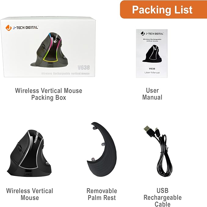 - Free Lifetime Support: The V638 ergonomic mouse, like all J-Tech Digital Products, includes a One-Year Manufacturer Warranty and free lifetime technical support from our US-based Customer Support Team (Available M-F 9AM-6PM CST). Contact information available on the J-Tech Digital Seller Page.