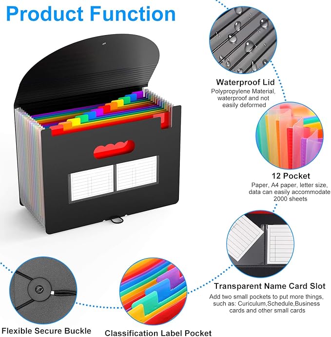 - 📂【Expandable & High Capacity】-The expanding file folder is the perfect solution for all your filing needs. You can easily categorize and store your documents, papers, receipts, coupons, and any other paperwork you may have. 12 pockets allow you to store more than 2000 sheets of paper documents.