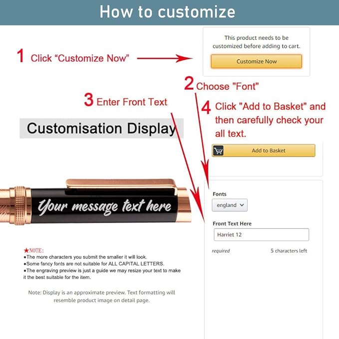 - FREE PERSONALIZATION You can have up to 50 characters (including spaces) on each line, up to 2 customized lines are free. we use laser engraving technology to engrave the text on the pen without fading. As long as you click the "Customize" option, you can easily customize it. Beautiful appearance, suitable for gift.