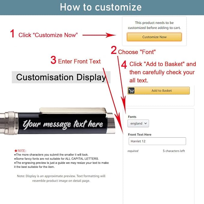 - FREE PERSONALIZATION You can have up to 50 characters (including spaces) on each line, up to 2 customized lines are free. we use laser engraving technology to engrave the text on the pen without fading. As long as you click the "Customize" option, you can easily customize it. Beautiful appearance, suitable for gift.
