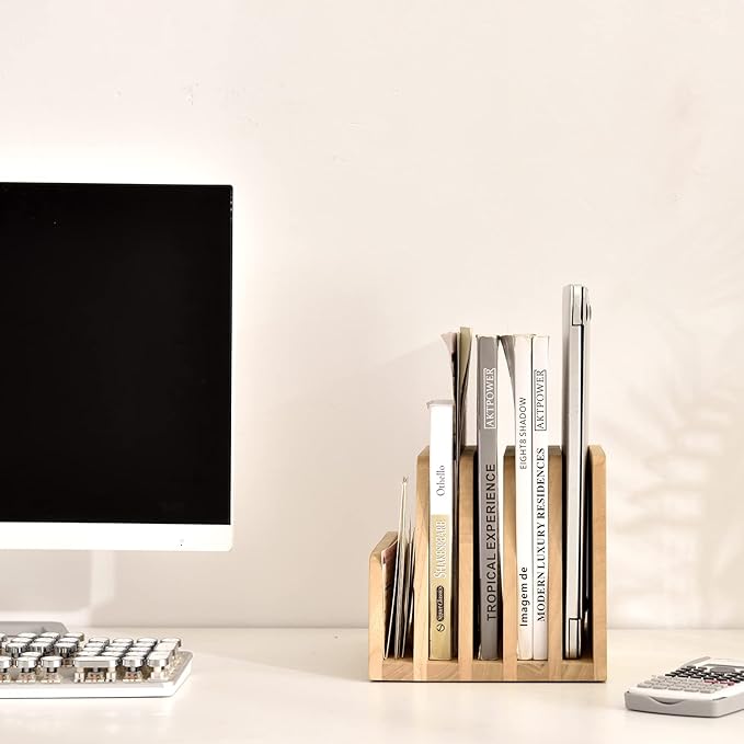 - [FUNCTIONAL & 5 SLOTS]: The desktop paper organizer easily holds all standard size mail, file folders, papers, books, documents for home and office.
