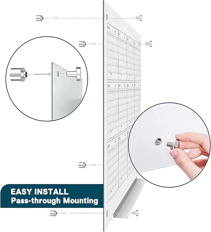 - 【Giant Glass Planner】Easily and clearly to show your style. It makes it easy for your team, class and family to stay organized and to set goals. With the hidden mounting hardware, it creates a floating appearance, making the board surface more fully used and a focal point of your space