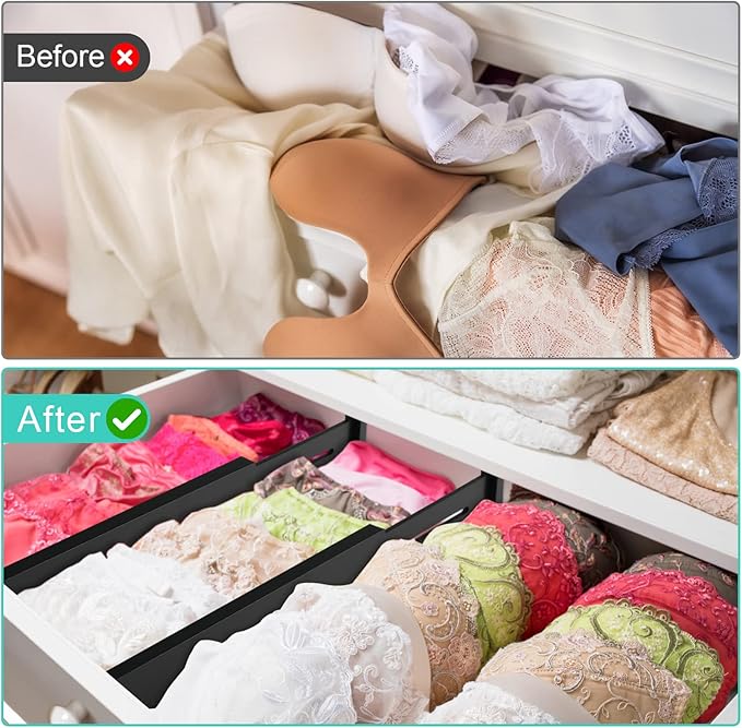 - ARE YOU TIRED OF MESSY & OVERCROWDED DRAWERS? Drawer Dividers are the perfect solution to organize any drawer in your home, from the kitchen to the bedroom. It is remarkable how such a small investment into organizing your drawer space makes a BIG difference allowing each item to have it’s place