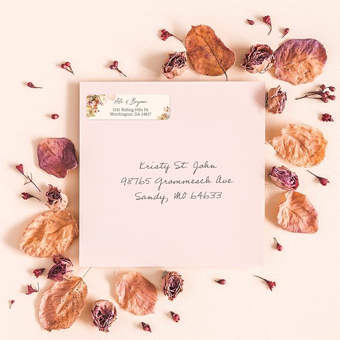 - Perfect Size: These classic address label designs measure approximately 2Β½" x ΒΎ". Colorful and rustic burnt orange floral illustration accompanied by trendy font choices brings charm to this timeless address label. Large, caligraphy name complemented by clean, legible address font.