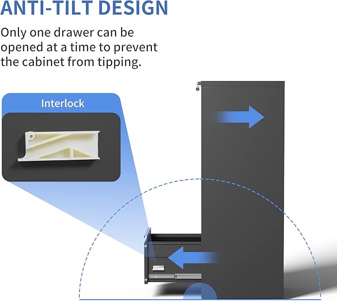 - 【Anti-tilt Design】This filing cabinet 4 drawer designed with full extension and steel ball-bearing suspension, all drawers of the file cabinets can be opened and closed quietly and easily. The anti-tilt system ensures that only one drawer can be open at a time, preventing the metal file cabinet from tipping over. You can have peace of mind knowing that your important documents and items are safe and secure.