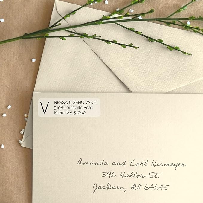 - Perfect Size: These classic address label designs measure approximately 2Β½" x ΒΎ". Simple design for any wedding theme, trendy font choices brings charm to this timeless address label. Clean, legible address font with a large monogram letter.