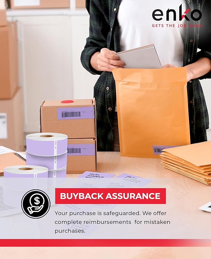 enKo [6 Rolls, 2100 Labels] Address, Shipping & Barcode Labels 30252 - Lavender (1-1/8" x 3-1/2") Compatible for Dymo LabelWriter