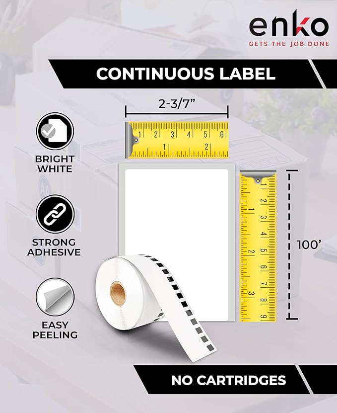 enKo - Compatible DK-2205 Continuous Adhesive Thermal Labels (2.4 Inch x 100 Feet) Compatible Labels for Brother Label Printer QL-820NWB QL-800 QL-810W - [12 Rolls, No Cartridge Frames]