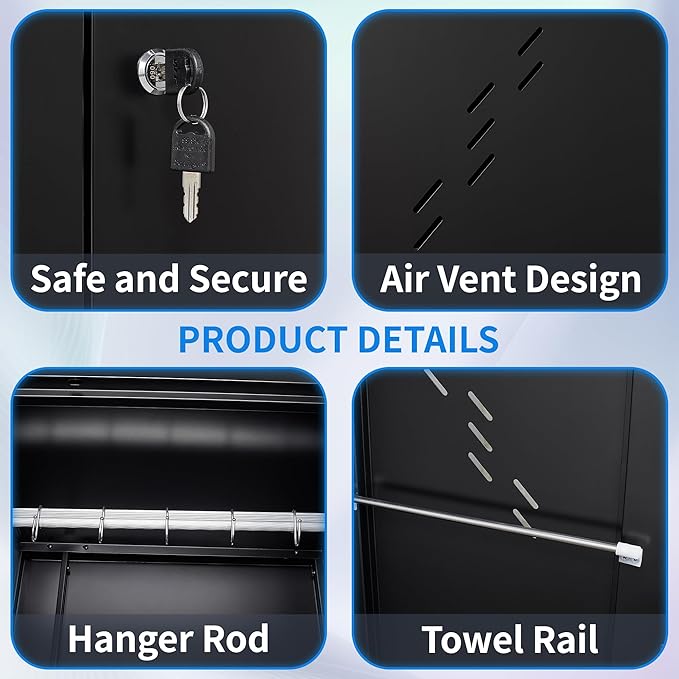 - 【Durable Structure】Crafted from all steel and powder coated, our garage storage cabinet boasts a long service life and strong resistance to corrosion and rust. It’s more durable than wooden lockers, making it a reliable choice for your storage needs.