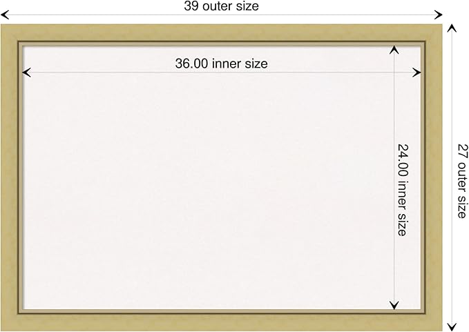 - DIMENSIONS: The overall size of this framed cork board measures 39 in. x 27 in., including the frame. Its functional cork board area measures 36 in. x 24 in.