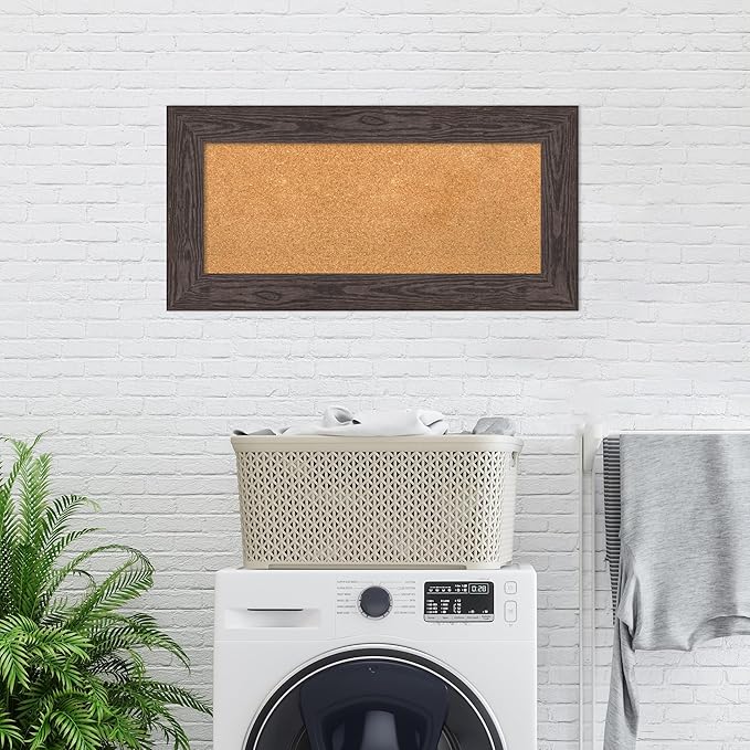 Amanti Art Natural Cork Board for Wall, 18x36 Vision Board with Black Wood Frame, Medium Corkboard Office Decor for Home Organization, Country Rustic Corkboard Pinboard to Display Items for Home