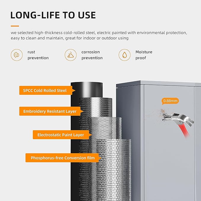 - 『Stability Design』:Garage storage cabinet features a stability design with 2 pre-holes on the back of locking storage cabinet, help tool cabinets for garage be mounted to the wall, avoidding topple over.