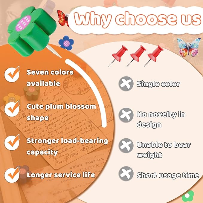 - What You Get: The package includes 40pcs flower shaped wooden thumb tacks and 40pcs butterfly shaped push pins, enough to fix various objects, and comes with a white box, which is convenient for you to carry and prevent them from being lost.
