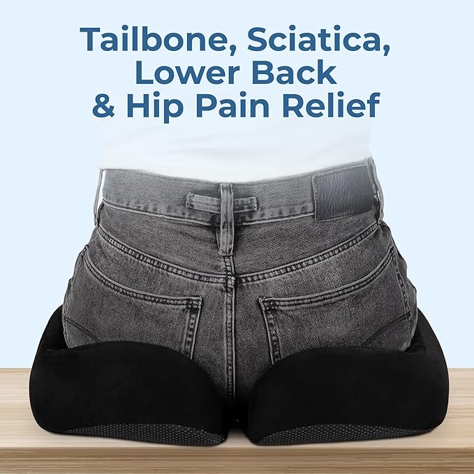 - 𝗖𝗹𝗼𝘂𝗱-𝗹𝗶𝗸𝗲 𝗖𝗼𝗺𝗳𝗼𝗿𝘁 & 𝗣𝗿𝗲𝘀𝘀𝘂𝗿𝗲 𝗥𝗲𝗹𝗶𝗲𝗳 𝗖𝘂𝘀𝗵𝗶𝗼𝗻: Distributes your weight evenly. Takes the pressure off your tailbone. Alleviates lower back, coccyx, sciatica, lumbar, and pelvic pain