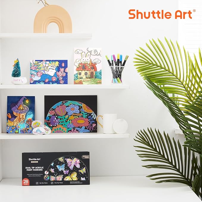 - 【28 UNIQUE AND METALLIC COLORS】: Shuttle Art 28 acrylic paint markers set contains 28 METALLIC colors: With so much colors, you can almost complete all of your daily creations.