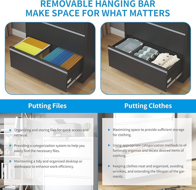 - 【Assembly Required】This user-friendly horizontal file cabinet comes with comprehensive, hassle-free assembly instructions, designed for effortless setup. The package includes clearly labeled parts, step-by-step illustrated manual and installation video on the product page, these make the assembly of the locking file cabinet easier.