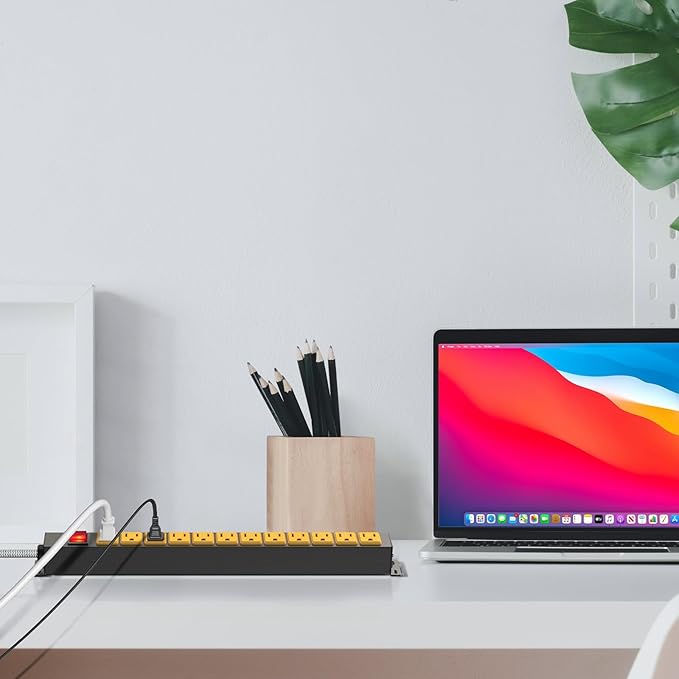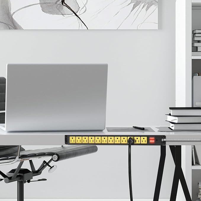 - The mountable power strip suits for various environments such as home, office, garage, workshop, school, factory, etc. Yellow color makes it easy to spot in construction area.
