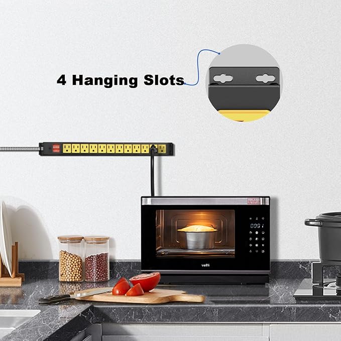 12 Outlet Heavy Duty Power Strip with 15A Circuit Breaker,Metal Wall Mount Power Strip for Garage Workshop Industrial 1200J 15A 125V 1875W 6ft Cord