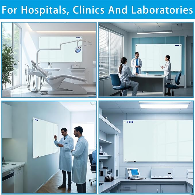 - TEMPERED GLASS WHITEBOARD: Our 48" x 36" dry erase board is made of ultra-high strength tempered glass. So that can resists scratches and dents.Extended service life