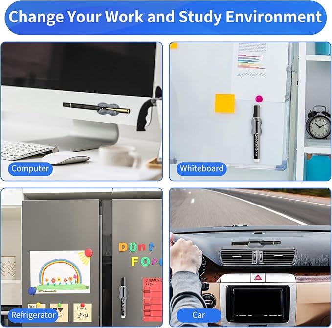 - 【Durable Silicone Material】The sticky pen holder is made of high quality silicone, which is durable flexible BPA-FREE kids-safe and wear-resistant. The back adhesive of this pen holder allows for repeated sticking and removal without leaving any residue or damaging the surface. Easy to install without drilling, can be attached to any smooth surface, improve work and study efficiency by pick-up pens casually.